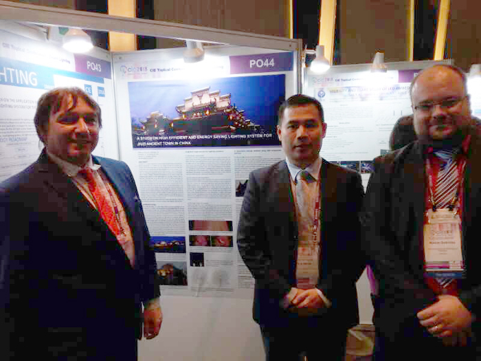 伴隨著智慧城市建設(shè),從室內(nèi)到戶外,智慧照明正逐步照亮城市生活的每一個(gè)角落。勇電智能照明研究所副所長、外國專家Steve Lau應(yīng)大會邀請,以安徽鳩茲古鎮(zhèn)這一建筑形態(tài)為中心,用英文發(fā)表了《中國安徽鳩茲古鎮(zhèn)照明利用節(jié)能和高效燈研究課題》演講,介紹了勇電大功率系列燈具在工程中的應(yīng)用特性及優(yōu)勢。