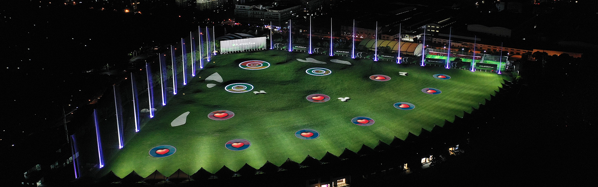 的燈光效果。球場中的果嶺既可以單獨展現(xiàn)獨有的燈光效果,也可以多個果嶺相互聯(lián)動,讓客戶在打球娛樂的同時,體驗